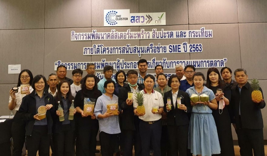 สสว. และสถาบันอาหารปลื้ม การเดินหน้าโครงการสนับสนุนเครือข่าย SME ปี 2563 คลัสเตอร์มะพร้าว สับปะรด และกระเทียม เผยเกษตรกรต้นน้ำผู้ประกอบการภาคการผลิตและแปรรูปตอบรับดี ขณะนี้อยู่ระหว่างการดำเนินโครงการโดยตอนนี้มีผู้เข้าร่วมโครงการไม่น้อยกว่า 450 ราย โดยประกอบด้วย คลัสเตอร์มะพร้าว (คลัสเตอร์มะพร้าวน้ำหอมบ้านแพ้ว จังหวัดสมุทรสาคร) คลัสเตอร์สับปะรด (คลัสเตอร์สับปะรดสยามโกลด์ จังหวัดประจวบคีรีขันธ์) และคลัสเตอร์กระเทียม (กลุ่มเครือข่ายผู้ปลูกกระเทียม จังหวัดเชียงใหม่)